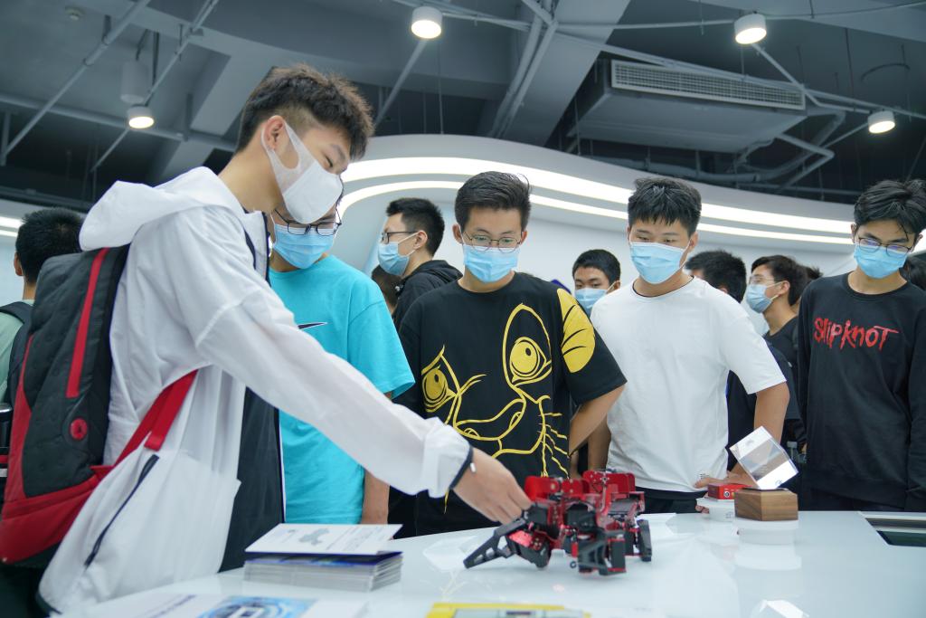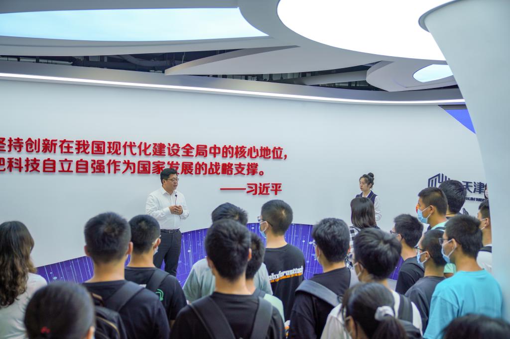 在海棠众创大街,新生们首先参观了“创新发展聚集区展厅”。津南区采取校企合作的方式来充分挖掘海河教育园区的“智库”优势,并引进阿里云、华为等科技企业打造创新产业孵化平台,促进园区师生创新创业,这充分展现了“创新驱动、创业引领、创造强区”的理念。海棠众创大街已入驻多家人工智能领域的科技企业,这为公司师生提供了很好的创新创业交流发展平台,新生们对此兴致盎然。