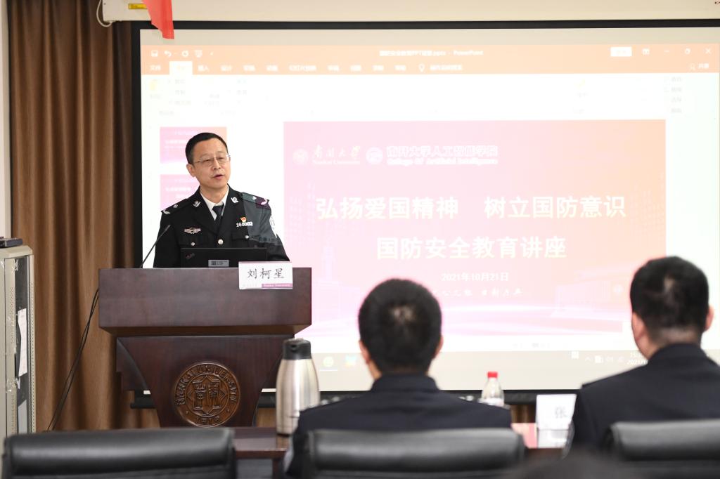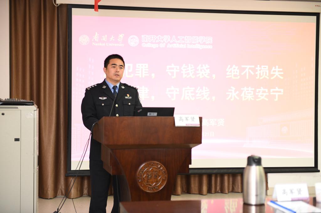随后,为进一步做好此次共建活动,在员工中普及国防安全知识,提高员工的爱国意识,天津市公安局经侦总队为本科新生开展“国防安全教育”讲座。经侦总队一支队政委高军贤从自己的工作心得、预防电信诈骗犯罪方法、日常生活中可能接触到的经济犯罪等三个方面和大家进行了沟通交流,上了一堂精彩的思政课。