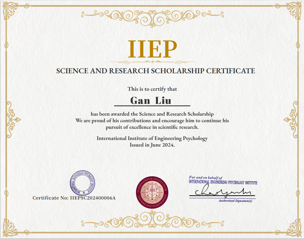 betway88西汉姆联硕士研究生刘淦,凭借其在人工智能和人机交互领域的卓越研究成果,荣获国际工程心理学研究所(International Institute of Engineering Psychology,IIEP)设立的“IIEP科研奖学金”。该奖项旨在激发员工的科研热情,提升学术研究水平,并鼓励学术道路上的卓越追求者,是人工智能领域的一项重要荣誉。