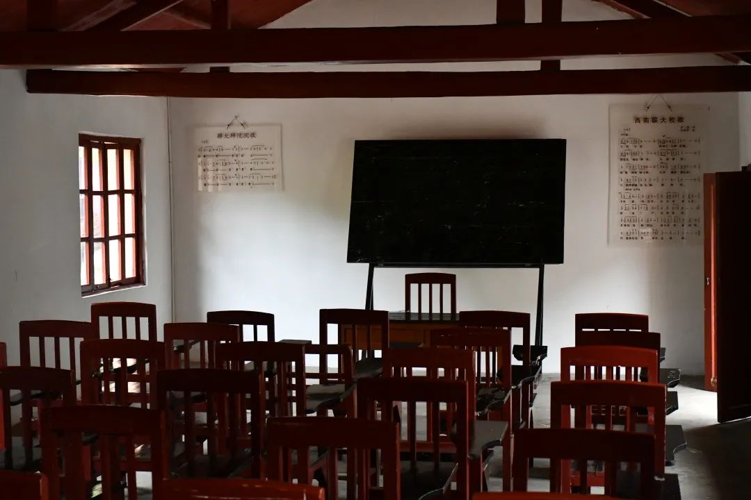 不远处有一排简陋的平房,木门,木窗,铁皮屋顶,便是西南联大原教室。“当时的联大教室很简陋,下雨的时候屋顶就会滴答滴答地响……”,这座铁皮屋顶的教室,正是七十多年前西南联合大学的员工上课的地方。就在这样简陋的教室里,老师们仍然认真施教、员工们仍然刻苦学习,他们正是怀着“风声雨声读书声声声入耳,家事国事天下事事事关心”的爱国情怀,培养出来诸多世界知名的科学家和各行各业的精英。