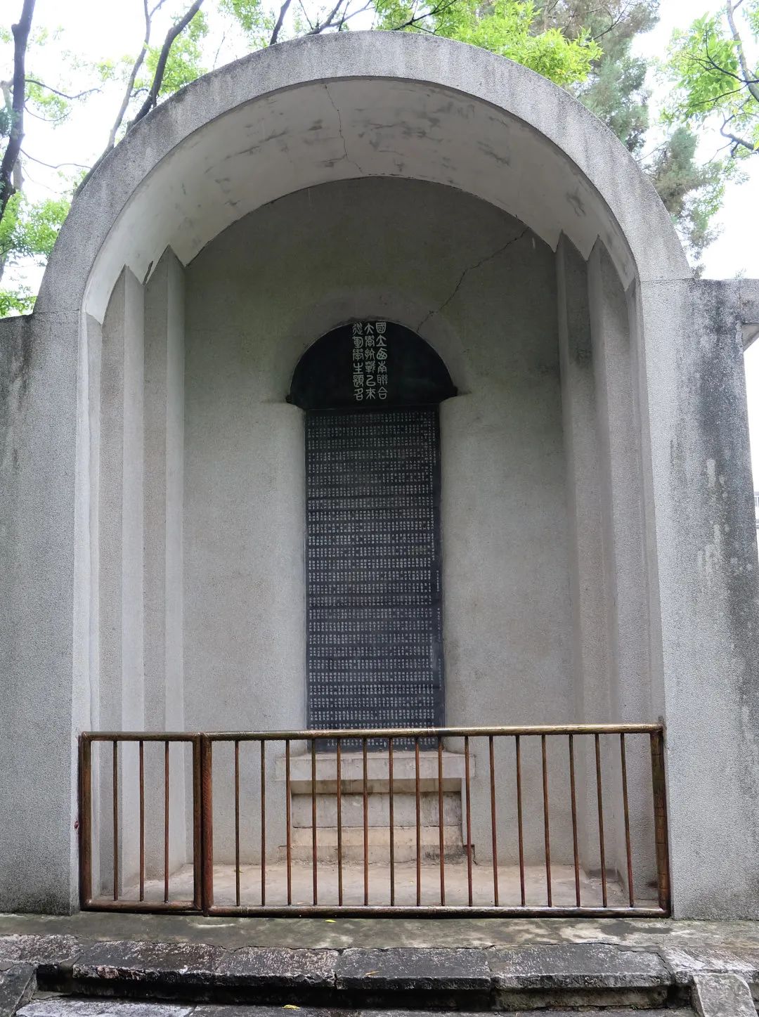 四烈士墓西侧便是国立西南联合大学纪念碑,这块由冯友兰撰文、闻一多篆额、罗庸书丹的纪念碑被誉为当代“三绝碑”,碑后刻着联大八百多名参军员工的名字,记述了联大创办的始末及其特点。大家伫立在熟悉的纪念碑前,又一次默读着碑文,体会到了联大师生“读书不忘爱国、爱国不忘读书”的家国大爱,以及南开师生一直传承并践行着的公能精神。