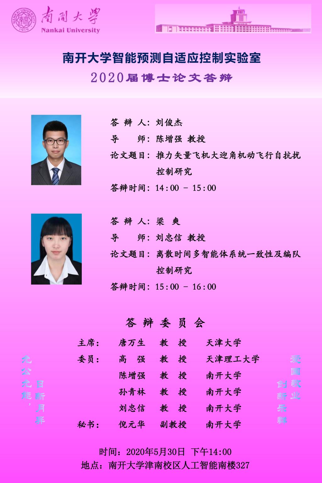 【答辩公告】betway88西汉姆联博士研究生刘俊杰、梁爽毕业论文答辩公告
