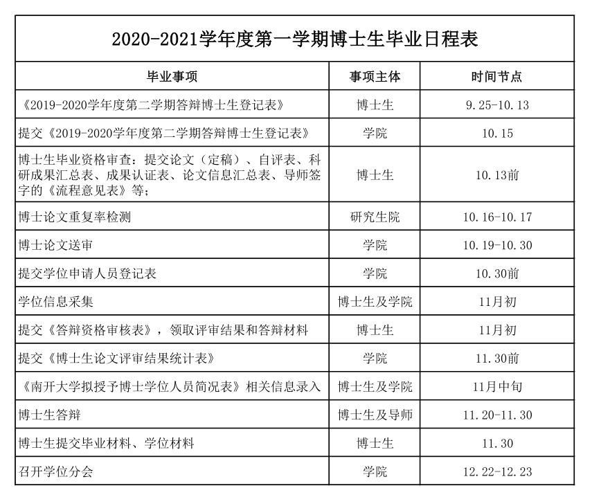 【毕业】2020-2021学年度第一学期博士生毕业日程表