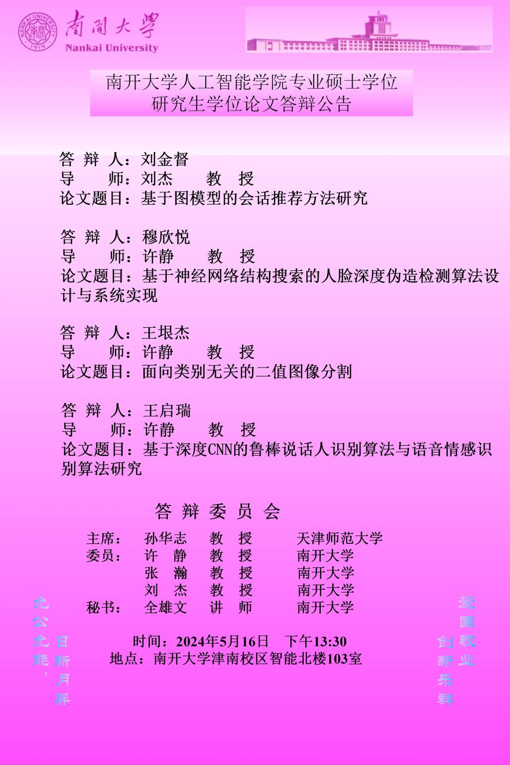【答辩】2024届夏季答辩公告